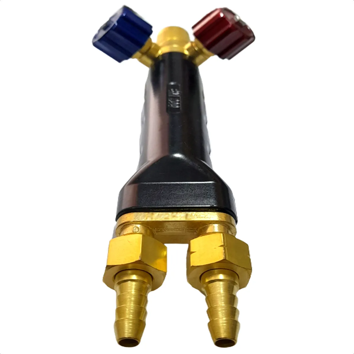 Trabalha com os gases combustíveis acetileno e ou GLP, bastando apenas trocar as extensões. Para cada tipo de gás combustível temos disponível cinco tamanhos de extensões para diversas espessuras de solda.